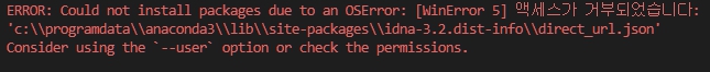 √ 라이브러리 설치시 아래와 같은 엑세스 거부 오류가 발생할 경우,